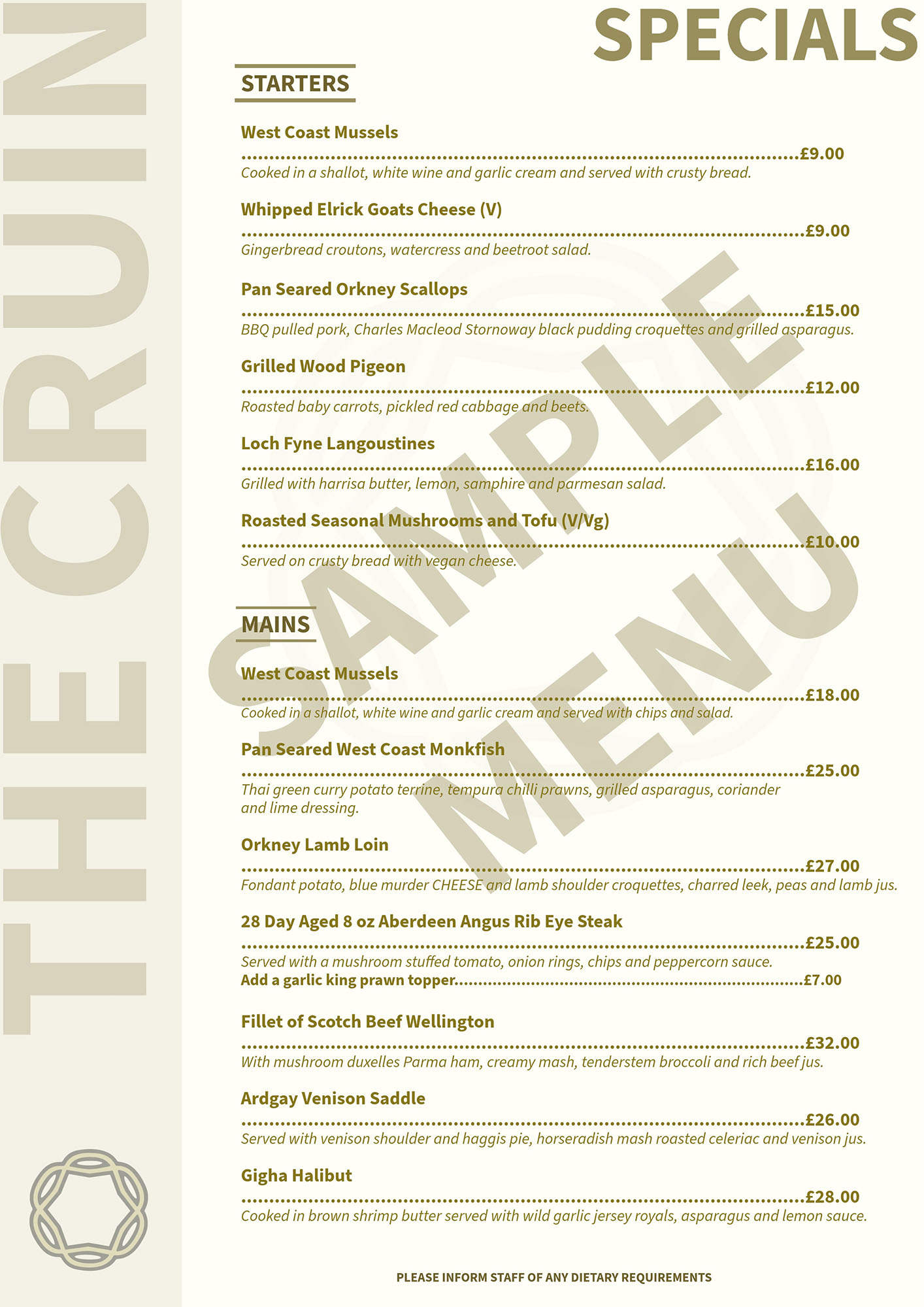 Welcome To The Cruin Loch Lomond The Cruin is a unique family owned venue situated on the banks of Loch Lomond. We offer views of Ben Lomond and across the loch to Inchmurrin Island. Since opening in 1998 we have gained a reputation for quality food and a spectacular friendly atmosphere!